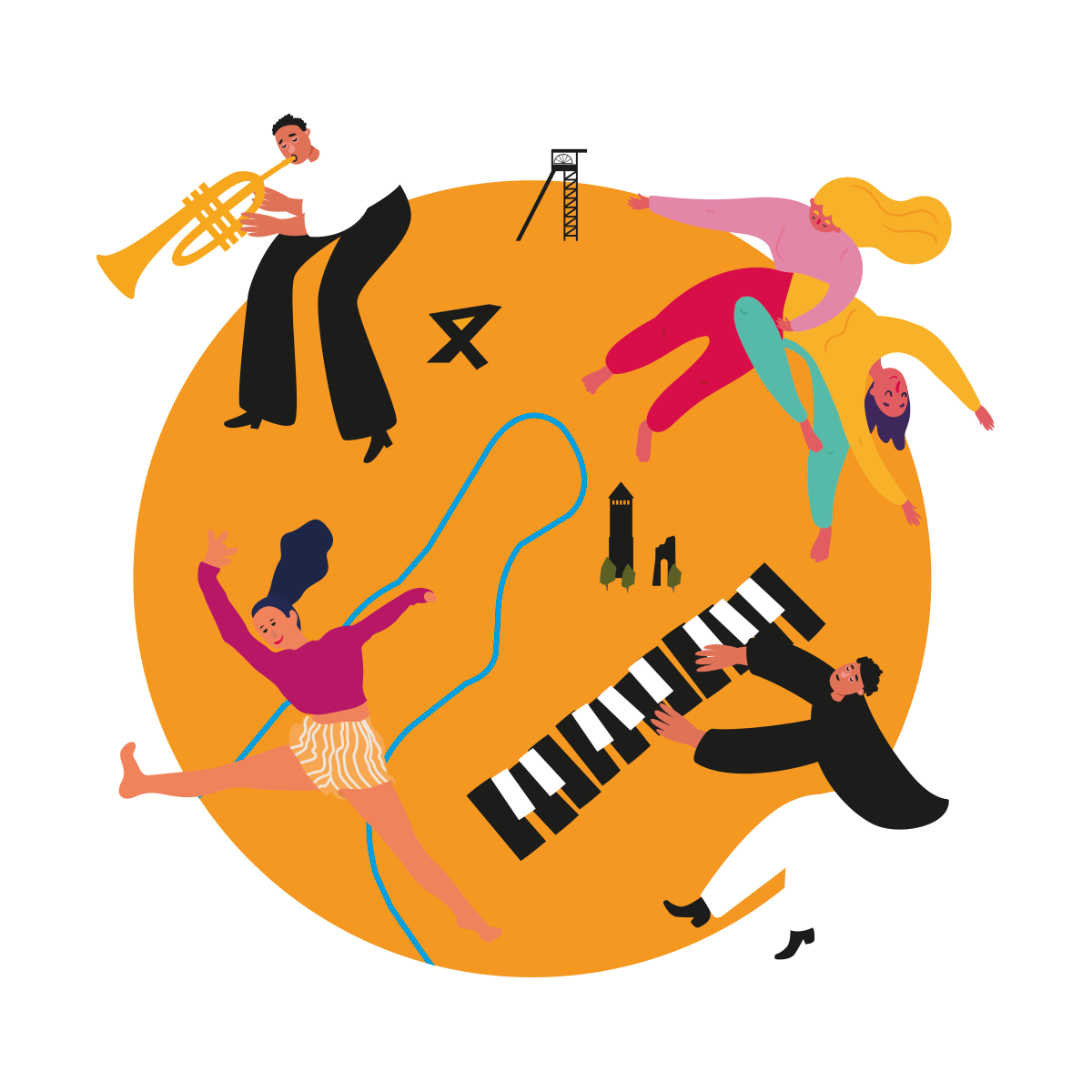 Tanz- und Musikbegeisterte aus Vereinen, Organisationen, Initiativen, Schulen und freiwilligen Zusammenschlüssen können sich zusammentun und ein gemeinsames Thema für einen kulturell relevanten Ort entwickeln. Den künstlerischen Ideen sind keine Grenzen gesetzt.